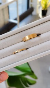 | Personalisatie | We personaliseren de ringen op vlak van samenstelling, breedte, afwerking, gravering en goudkeuze. |